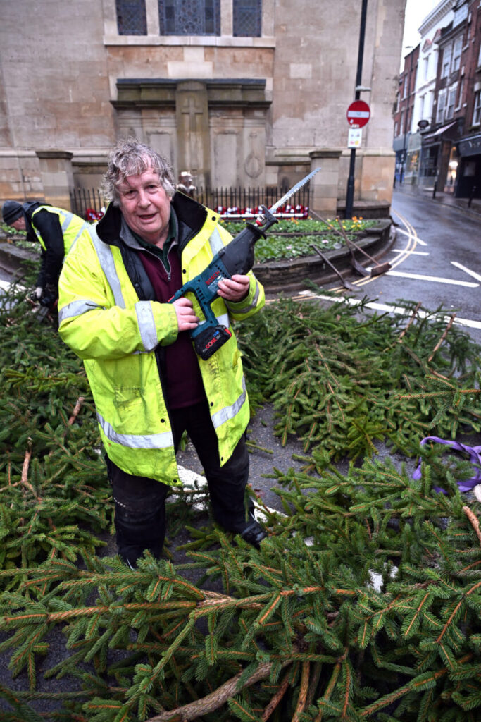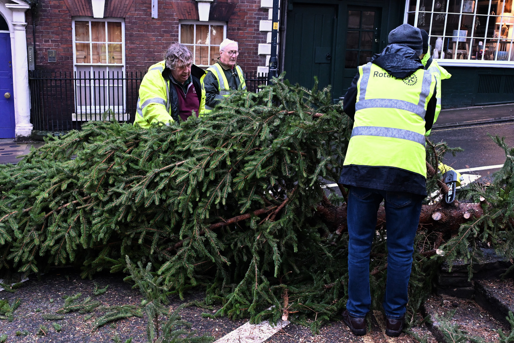 What was certainly one of the best Christmas trees we have ever donated to the town in over 30 years was successfully and swiftly felled, cut up and loaded onto a trailer.